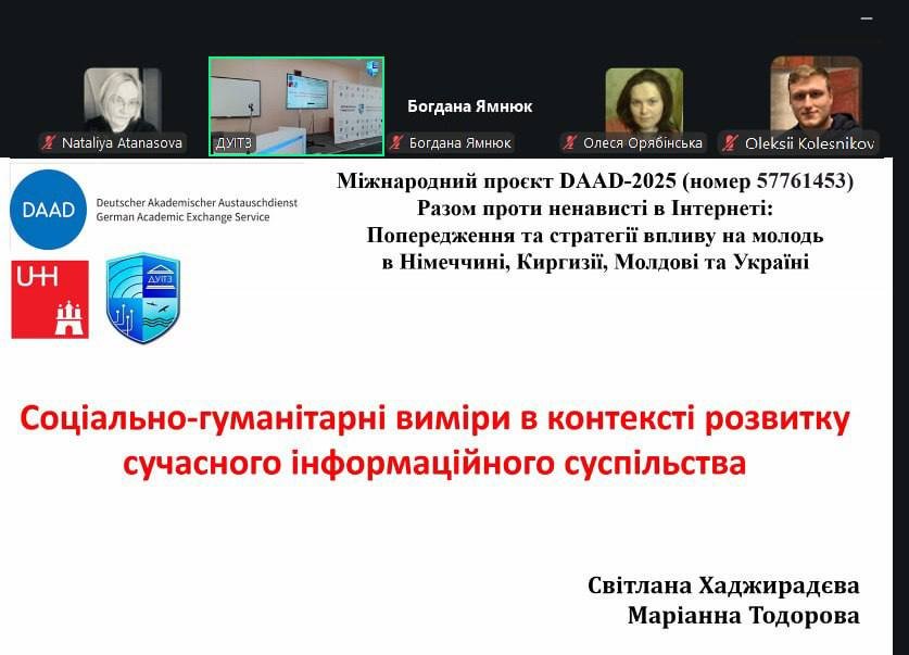 – Соціально-гуманітарні виміри в контексті розвитку сучасного інформаційного суспільства – Світлана Хаджирадєва, проф., д. держ. упр., проректор з навчальної роботи ДУІТЗ;